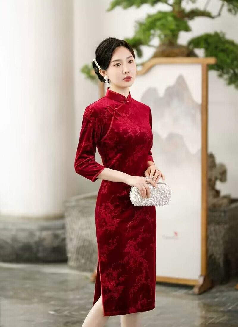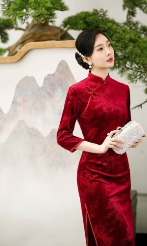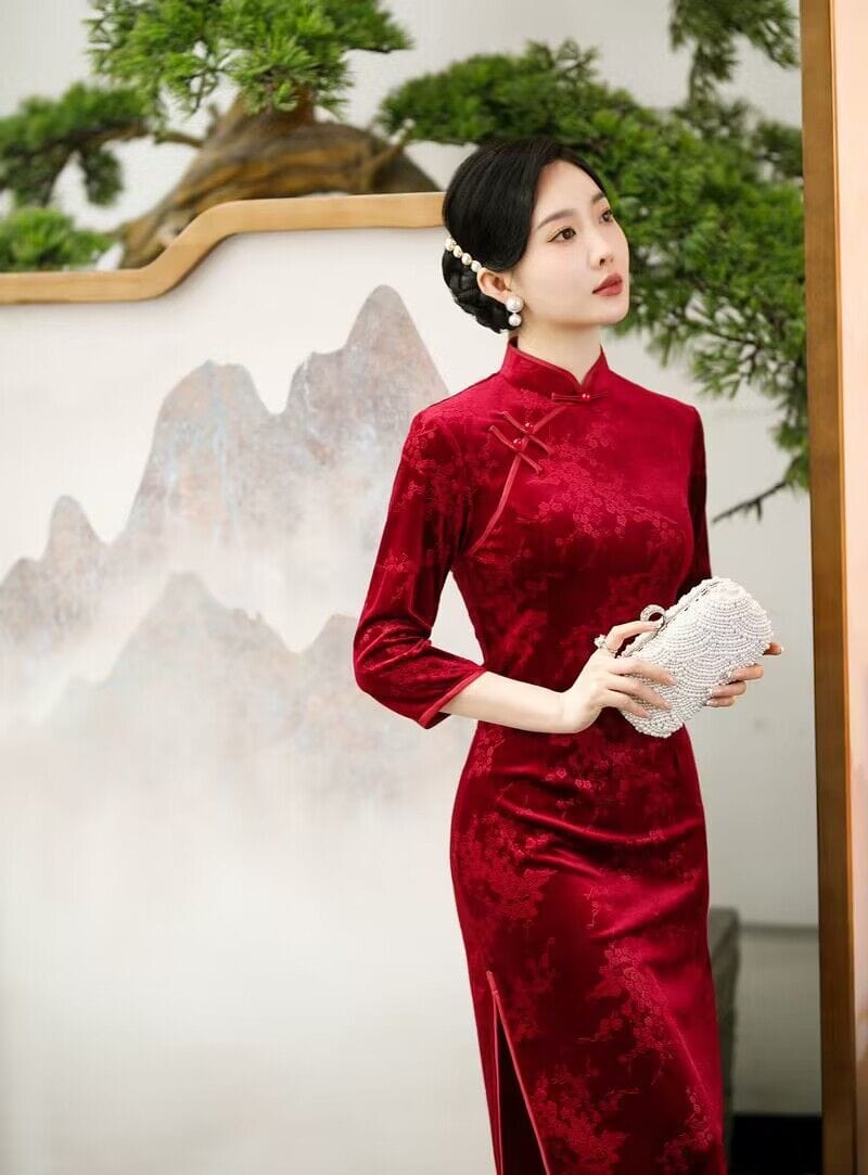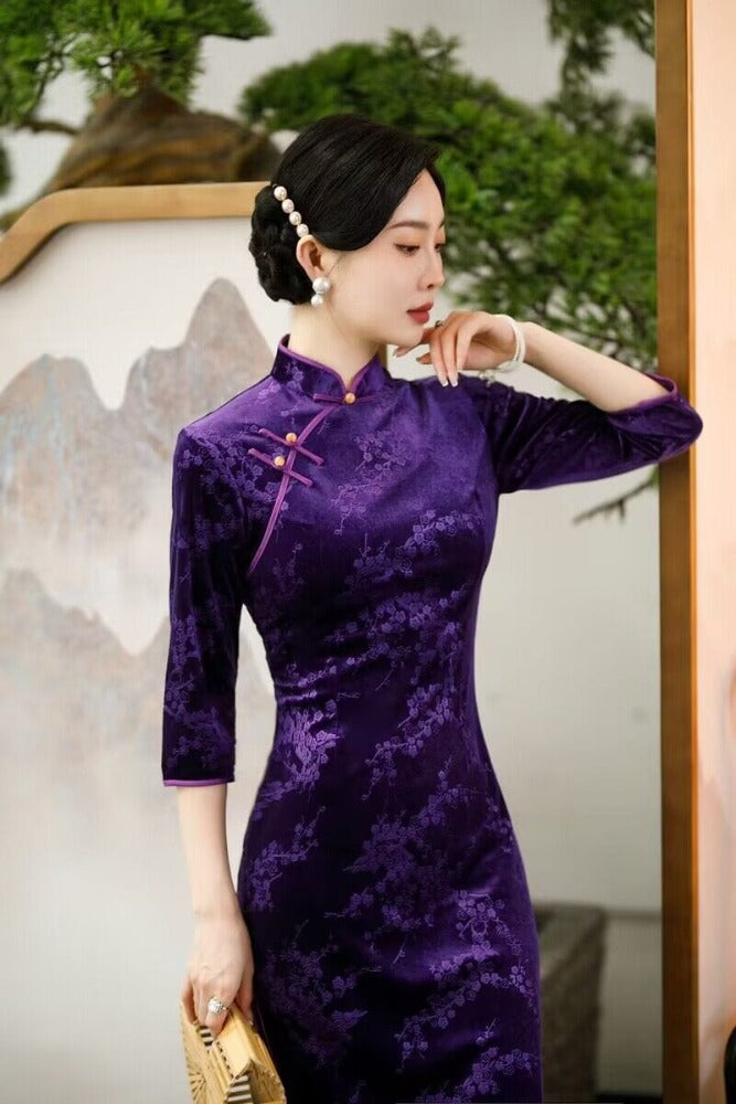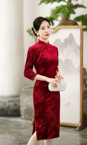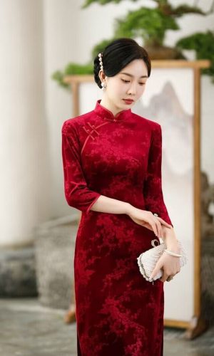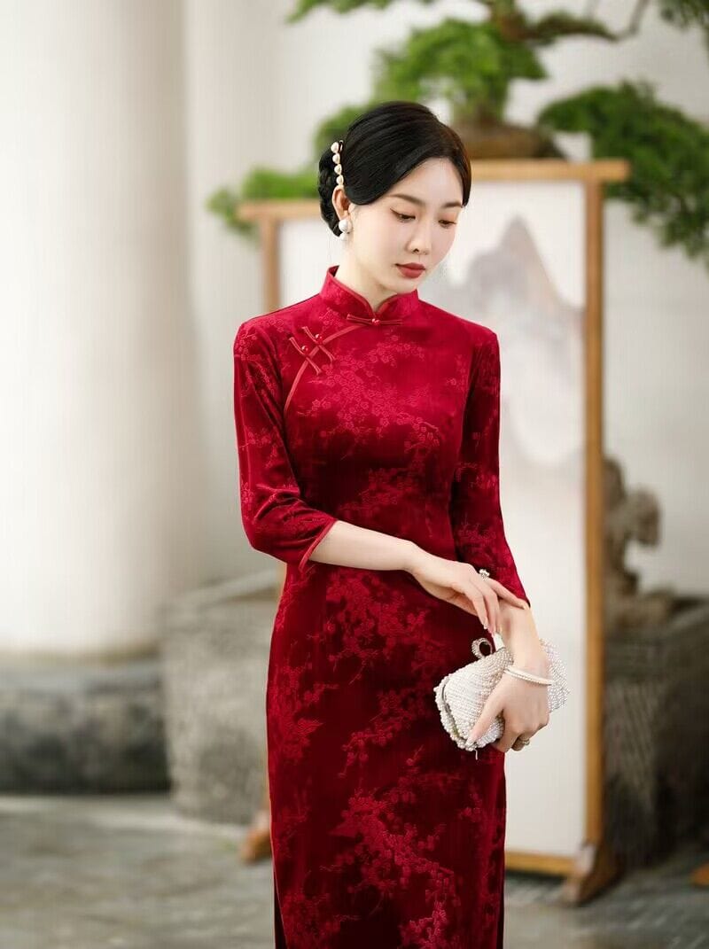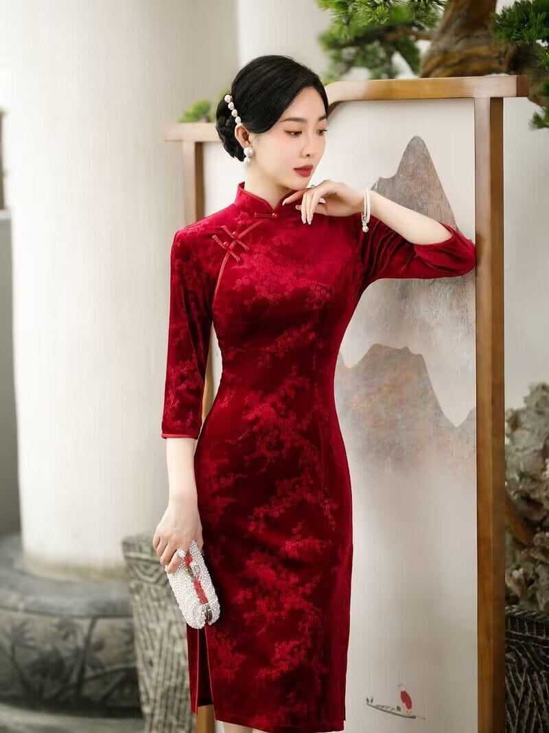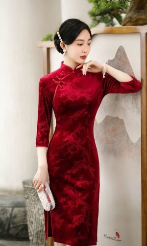 Be the first to review “매화 무늬, 벨벳 미디 플러스 사이즈 치파오”